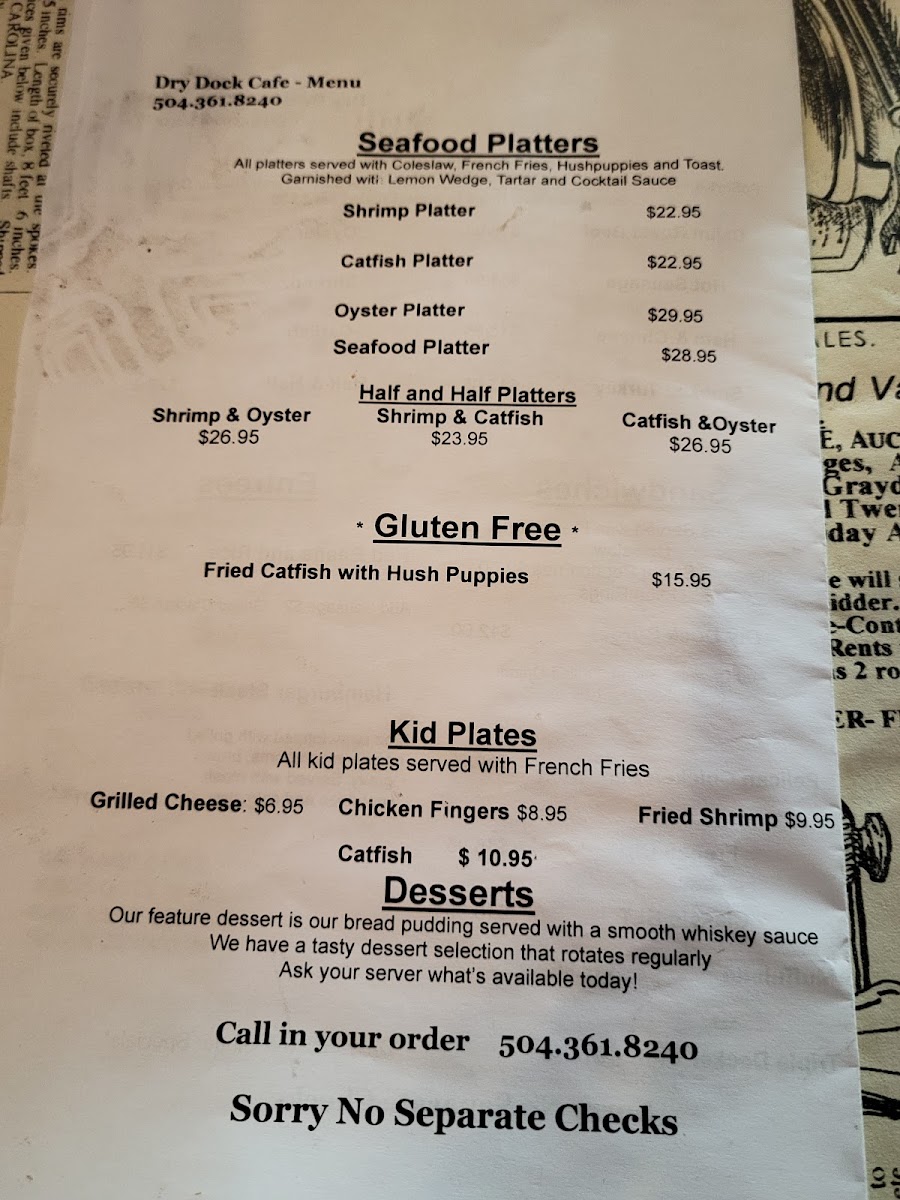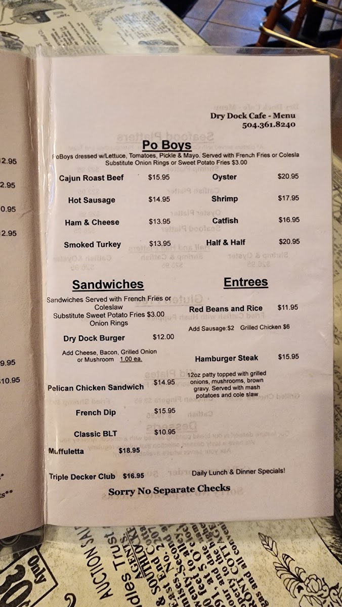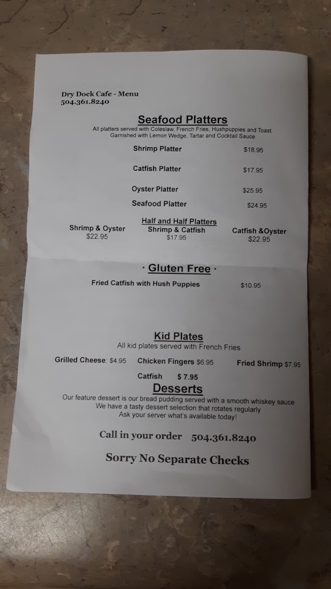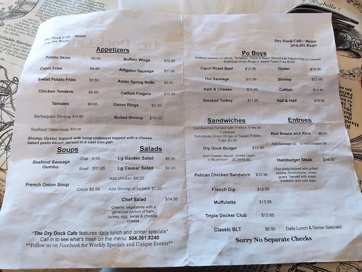 Dry Dock Café Menu